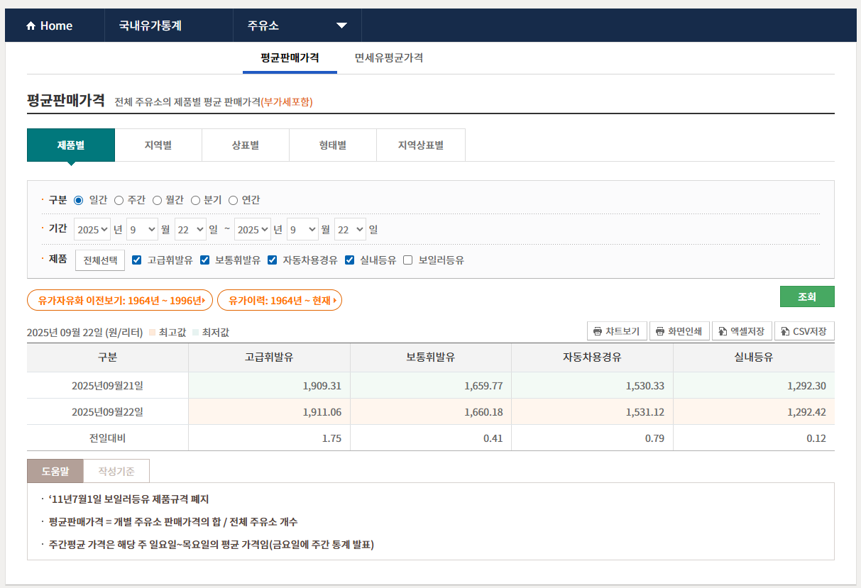 저는 주유소 가격만 보는 줄 알았는데, 한 달 단위 통계를 보니 “이번 달은 확실히 오르고 있구나”라는 흐름까지 잡히더군요. 그 덕분에 미리 주유를 하거나 다음 달을 대비할 수 있었습니다.