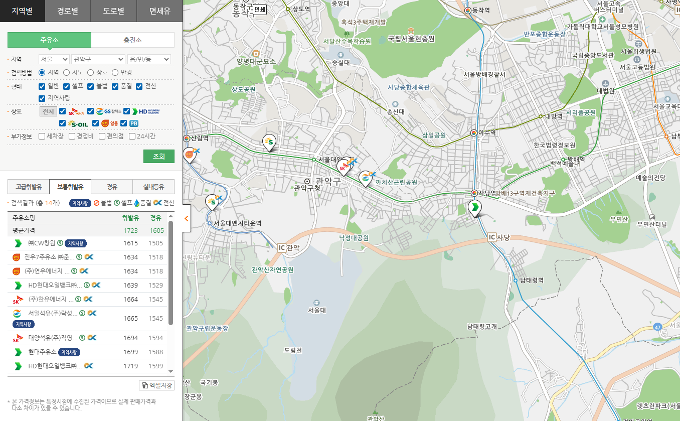 | 상표별 가격 비교 | 정유사별로 가격 차이를 비교할 수 있음 |