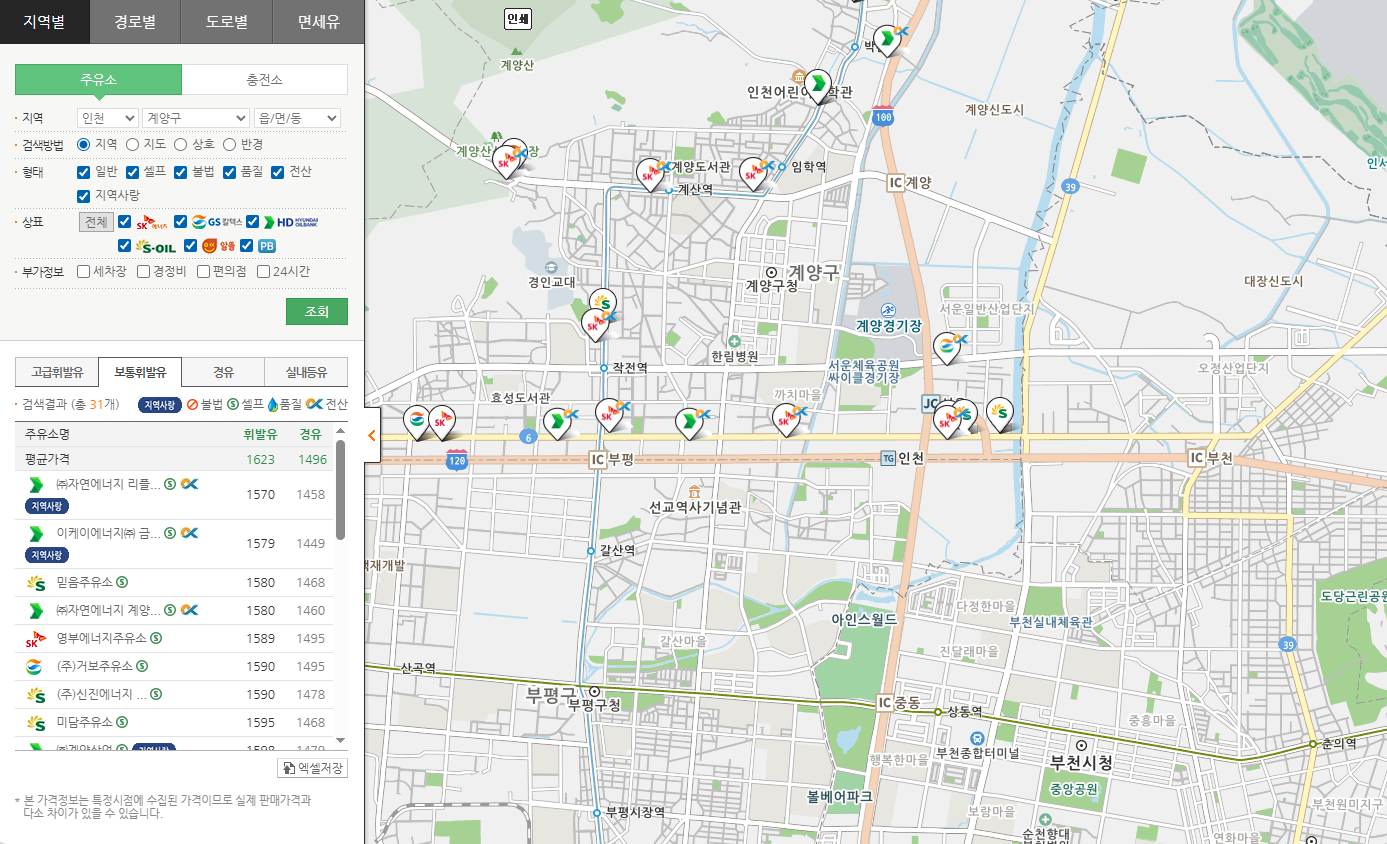 - 검색 결과에서 원하는 주유소의 가격과 위치를 확인합니다.