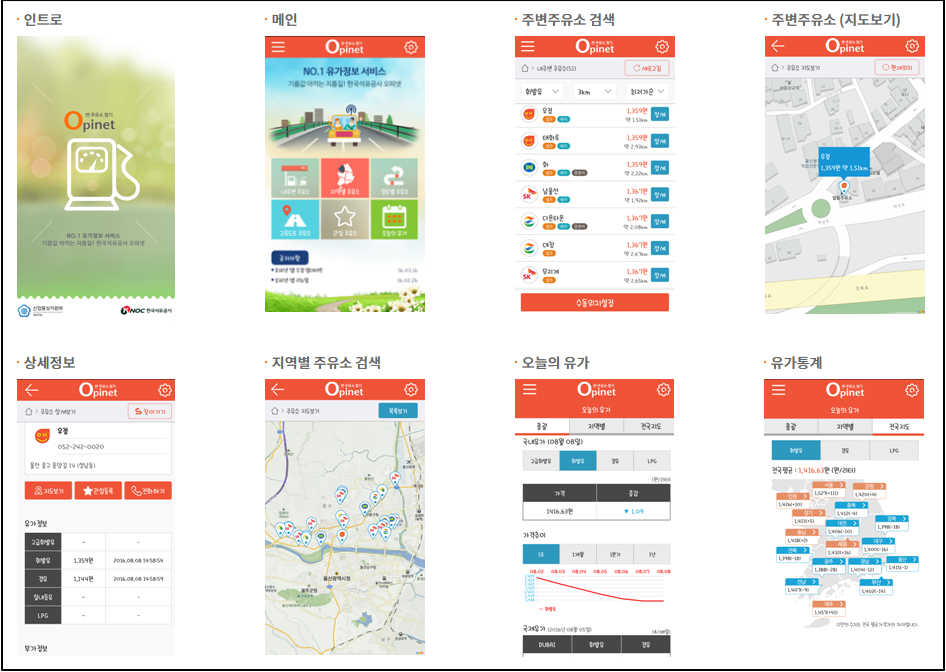 | 충전소 가격 | LPG, 천연가스 등 자동차 충전소 정보 포함 |