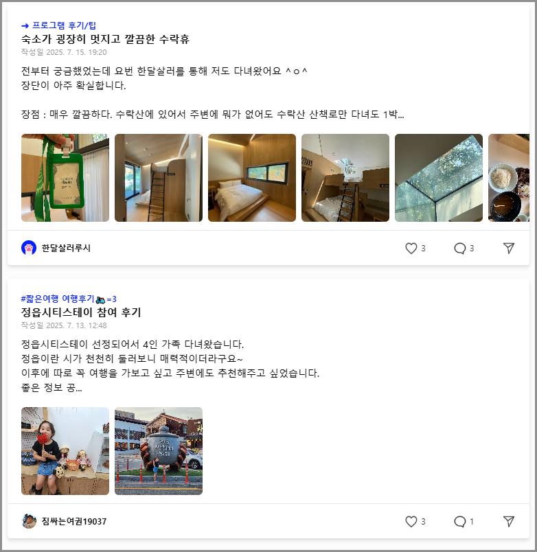 - 프로그램별 댓글·후기 커뮤니티 → 체험 전 실질 정보 확인
